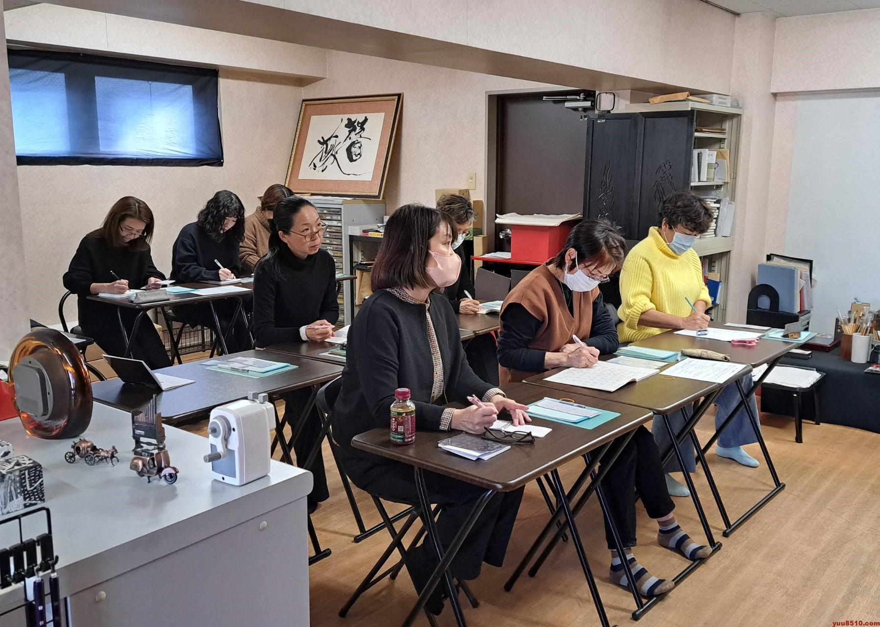 参加した塾生たちは、筆舞パフォーマンスの基礎を学びました。