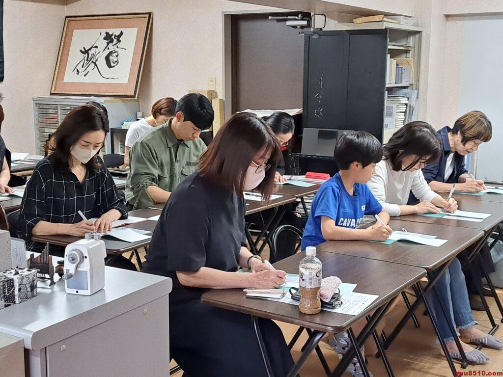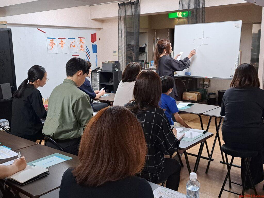 参加した塾生たちは、筆舞パフォーマンスの基礎を学びました。