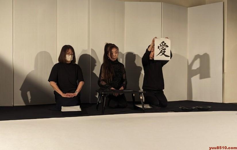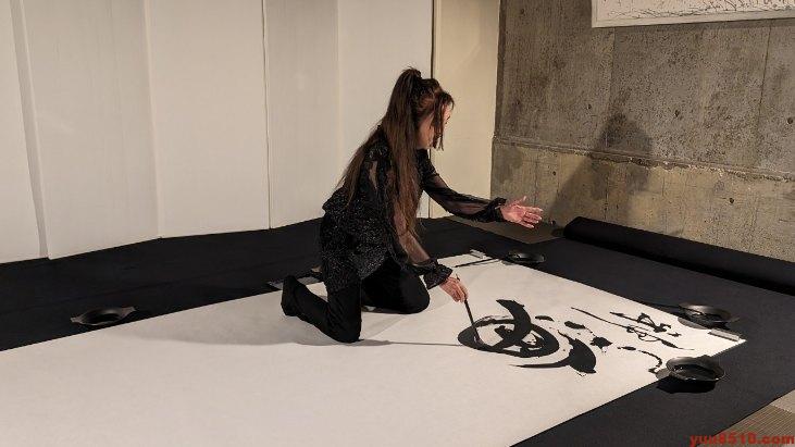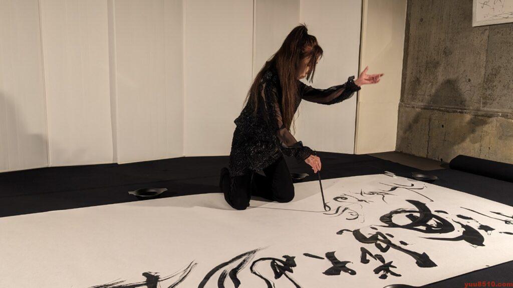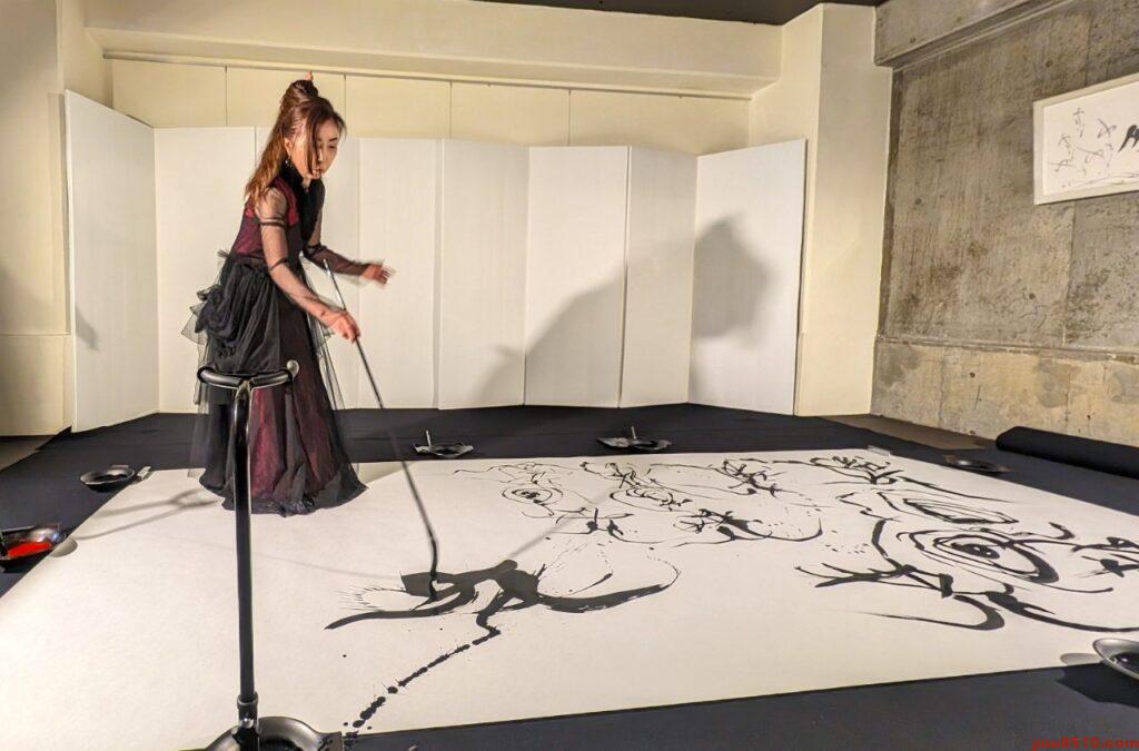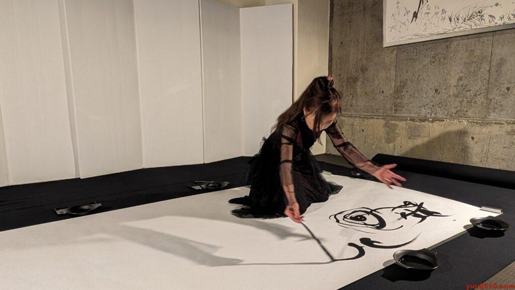 後半は、ギャラリー遊にて、筆舞「天地創造」と新たに「薔薇」も加え、2演目の実演です。
