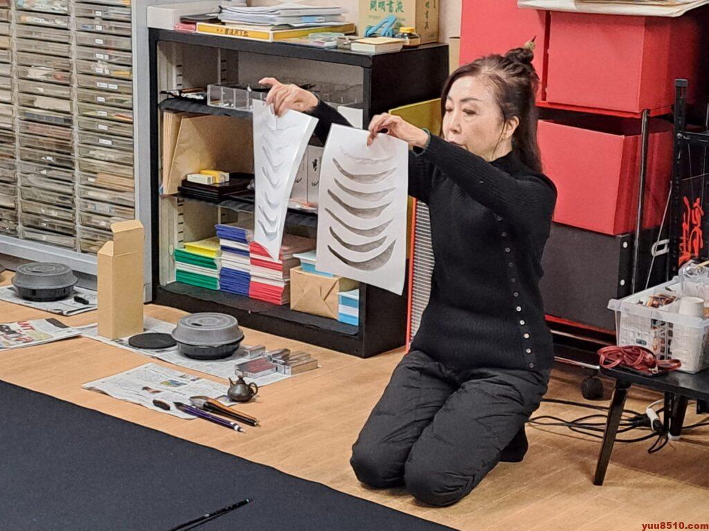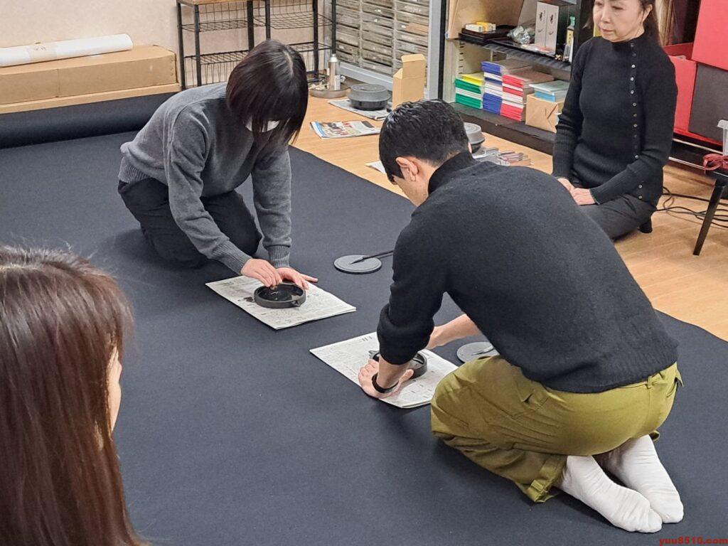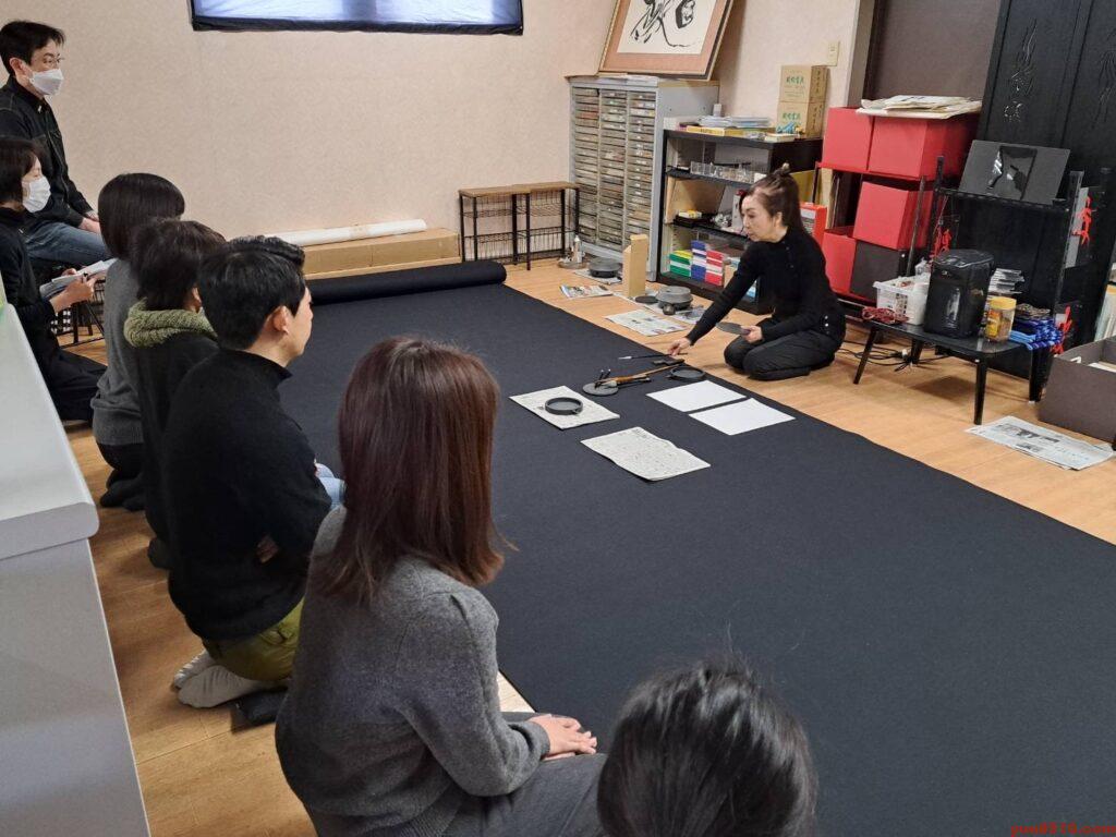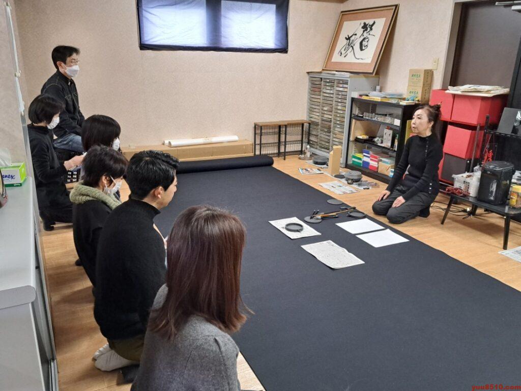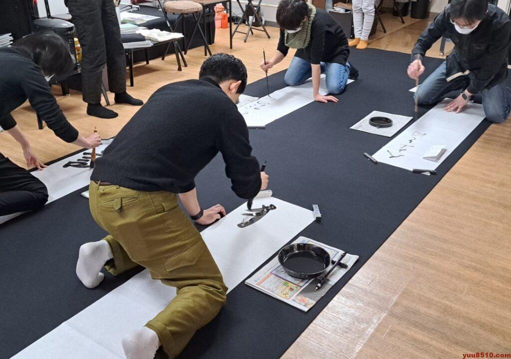 - 移動するときに墨で水分を含んだ紙が破れないように膝の動かし方に気をつけること